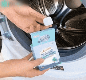 - Put one piece of Antibacterial Washing Machine Cleaner into the empty machine.