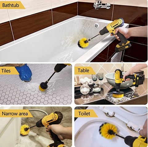 Brush set for cleaning kitchen, bathroom, floor, bathtub, furniture, car.Now with a quarter inch quick change shaft that will fit all drills and impact drivers.The Drill Brush yellow medium carpet brush is meant for rigorous scrubbing of carpets, tub and tile, and flooring.