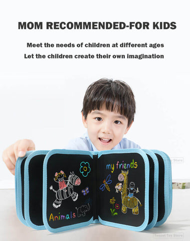 - Easy to Use & Portable - Simply draw on the magic pages and once ready to start again, simply wipe it and watch it disappear. It comes with up to 12 color markers and 14 pages. It's lightweight and can be used on car journeys or even taken to school