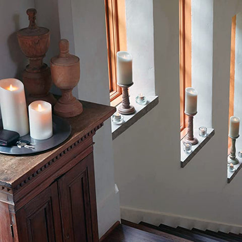 The beveled wave shape looks like a real traditional column candle. The top is uneven, giving a feeling of wax melting, so it looks real.