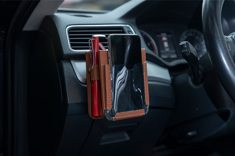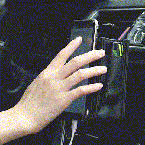 Keep all your travel essentials in one pocket only : 1 big pocket for storaging charger, cords, notepads, glasses, and 1 clear pockets for storaging cell phone, 1 open small pocket, 1 pocket for pen or sunglasses.