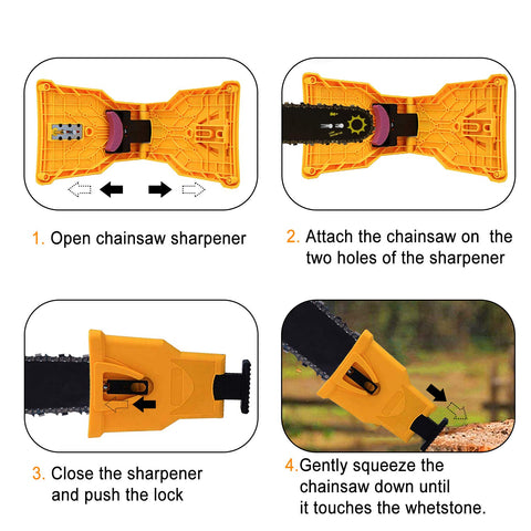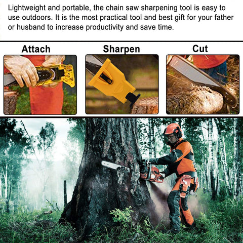 - 【QUICK】Get a sharp chainsaw quickly. Three steps: attach, sharpen and cut. Only few seconds, sharpening will be finished.