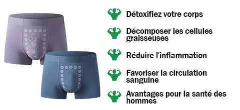 - When we wear this men's underwear, the body temperature can be detected by tourmaline points, and several tourmaline points can form an energy field, which can generate 100,000 to 300,000 units of energy per hour. . This energy penetrates the skin, improves blood circulation and eliminates inflammatory cells and toxins. Plus, energy is sent throughout your body, allowing you to experience the overall health benefits of body detoxification, anti-inflammation, and weight loss.